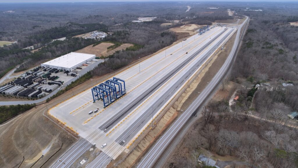 The Gainesville Inland Port will provide a direct link to the Port of Savannah via Norfolk Southern to Gainesville, Georgia. At full build-out, the rail terminal will feature 18,000 feet of working track. With a top capacity of 200,000 containers per year, the facility will offset 600 roundtrip highway miles for every container moved by rail. Open May 2026.